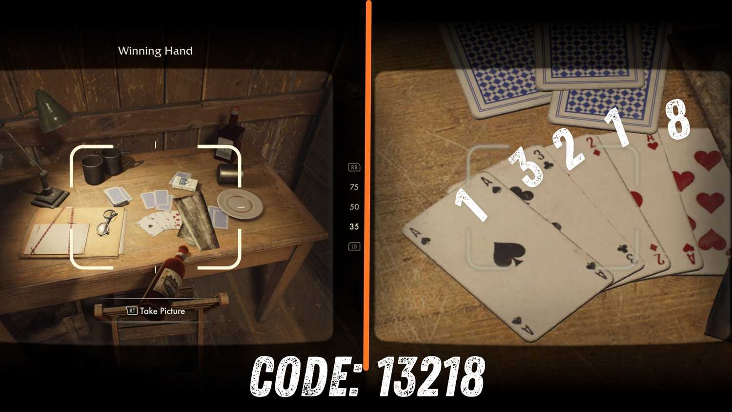 Ao entrar no quartel, pegue a Nota de Código no banco à esquerda. A nota menciona um soldado chamado Engel, que foi instruído a mudar a combinação do baú. A pista principal está na mensagem sobre o hábito de Engel de jogar cartas.