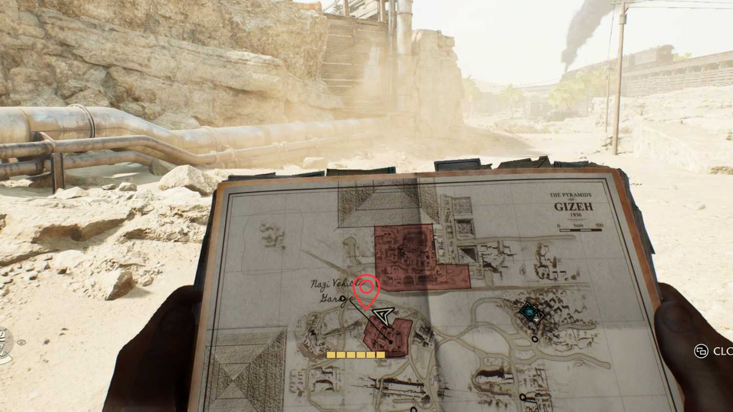 - Siga para a esquerda em direção à Garagem de Veículos Nazistas.