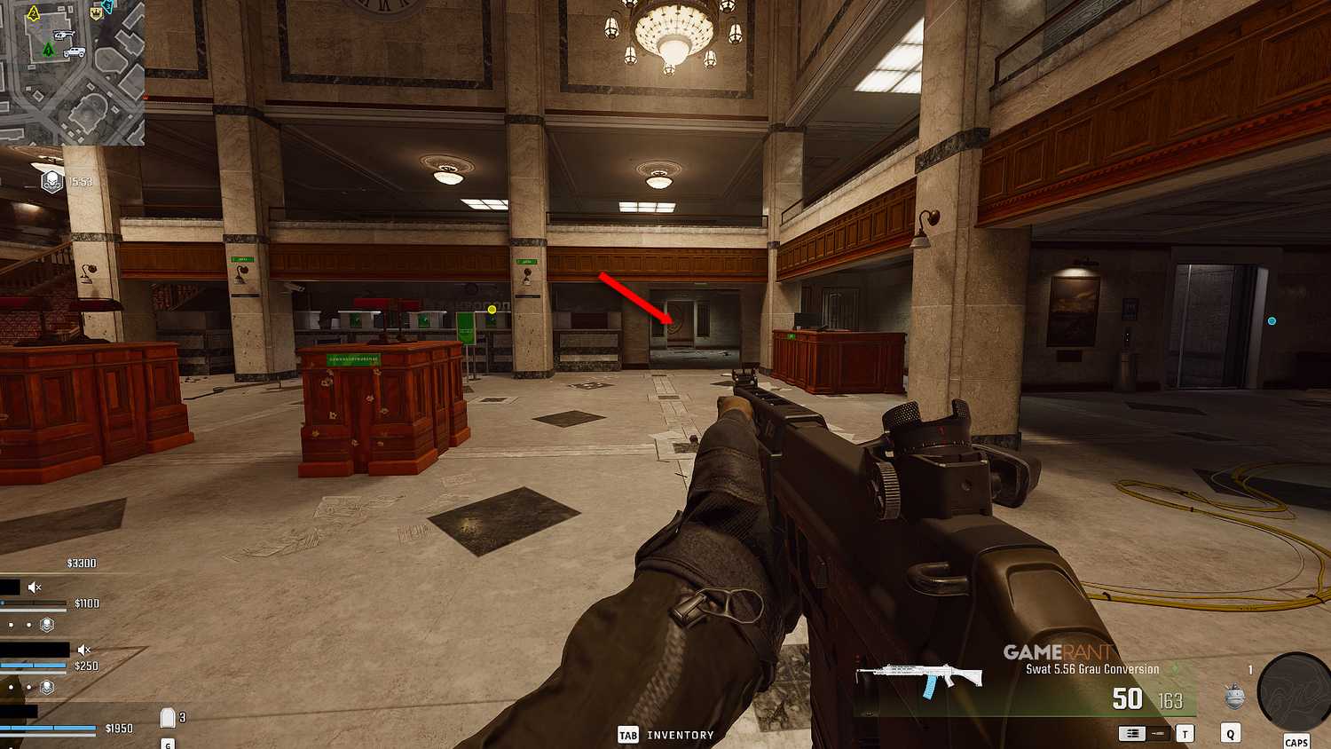 Para abrir o cofre de Verdansk, volte ao banco onde encontrou o Cartão-Presente. Siga esses passos: