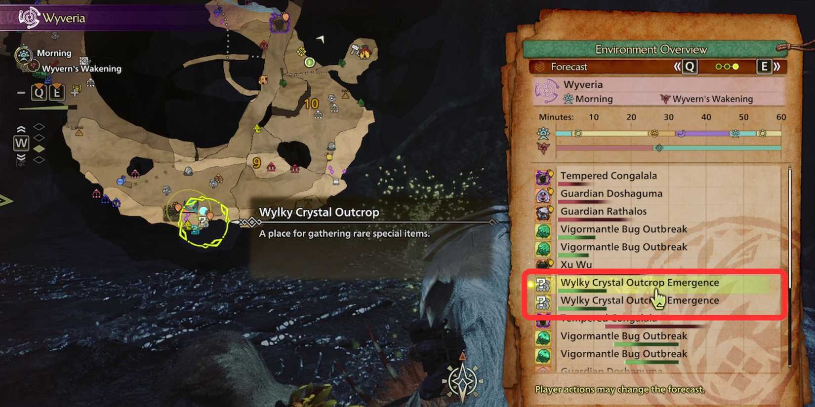 - Verifique se o evento Emergência de Afloramento de Cristal Wylky está ativo ou programado para a próxima hora.