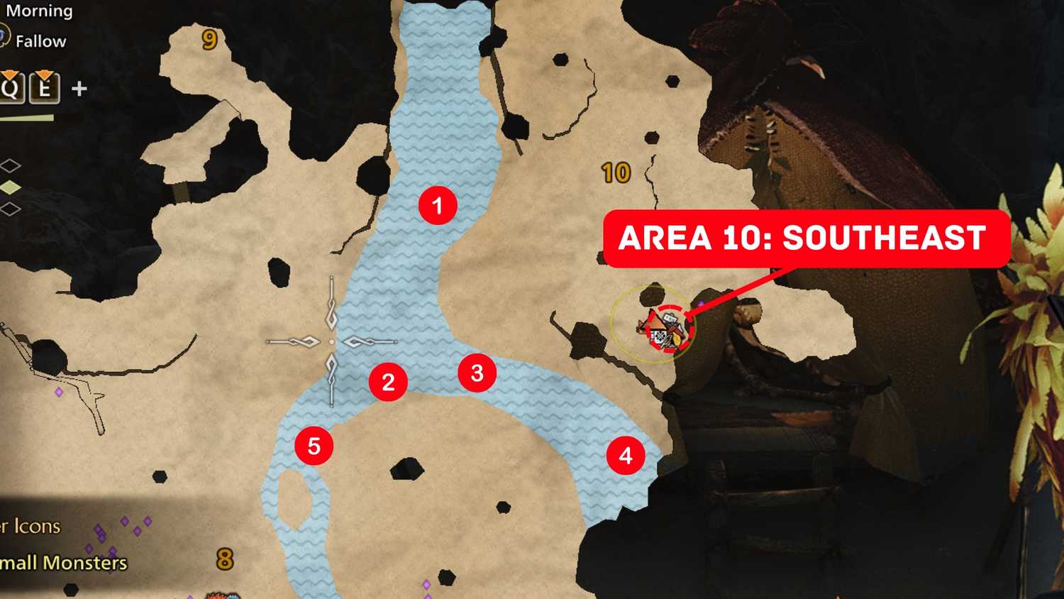 • Em seguida, vá para a Área 10: Sudeste. Cace os cinco Gajios na região ao redor.
