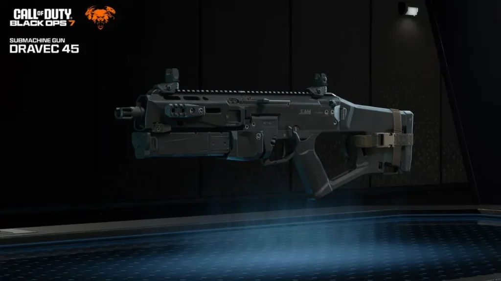 - Submetralhadora (Smg): Dravec 45 – Essa arma equilibra mobilidade, cadência é dano perfeitamente. Vai te permitir rushar pra cima dos adversários de forma letal