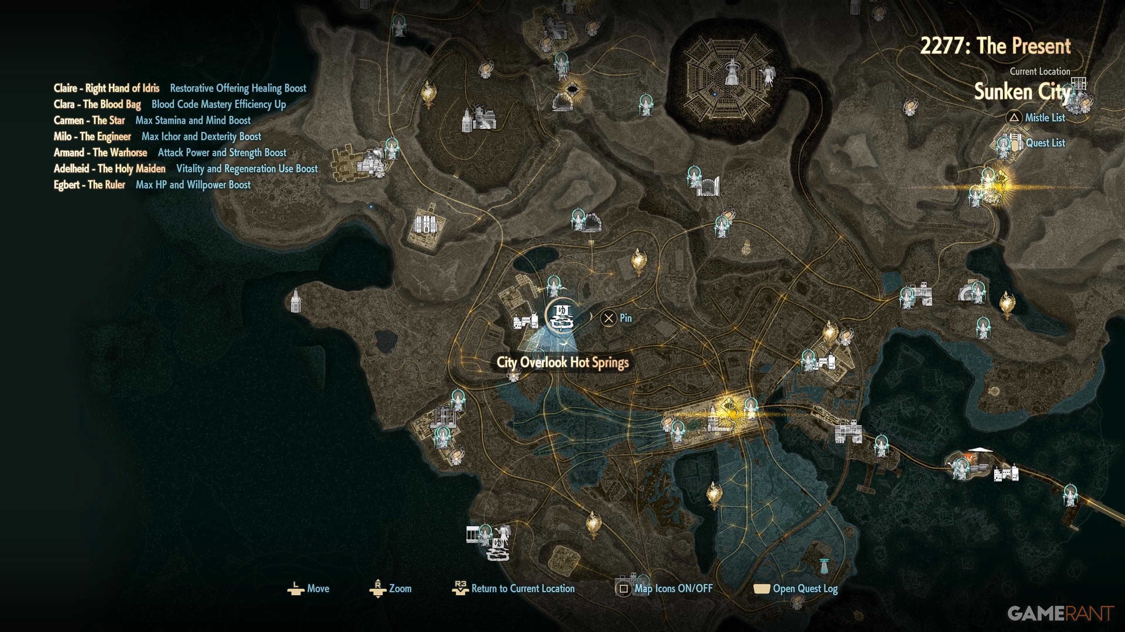 As fontes termais em Code Vein 2 funcionam como pontos de repouso fundamentais para o jogador. Além de oferecerem um momento de relaxamento entre os combates, a interação com esses locais concede receitas de vacinas essenciais para a sobrevivência. Existem seis fontes espalhadas pelo mundo, e encontrar todas elas recompensa o jogador com o troféu ou conquista Mestre Banhista.