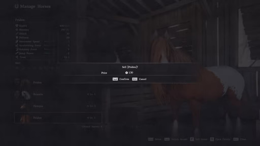 - Negócio de cavalos: Cavalos selvagens podem ser domados e vendidos em estábulos (via menu “Gerenciar cavalos”). Para um lucro maior, você pode procurar o receptador de cavalos, que paga preços melhores e oferece itens adicionais.