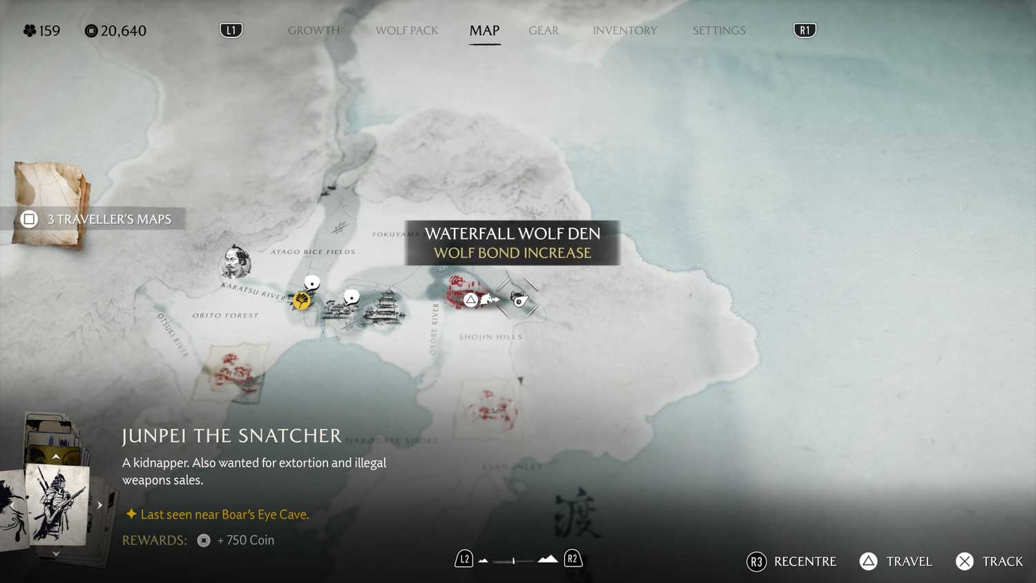 - Como chegar: siga para o noroeste do Rio Rumoi, supere os obstáculos de fogo e resgate os lobos para encontrar a toca.