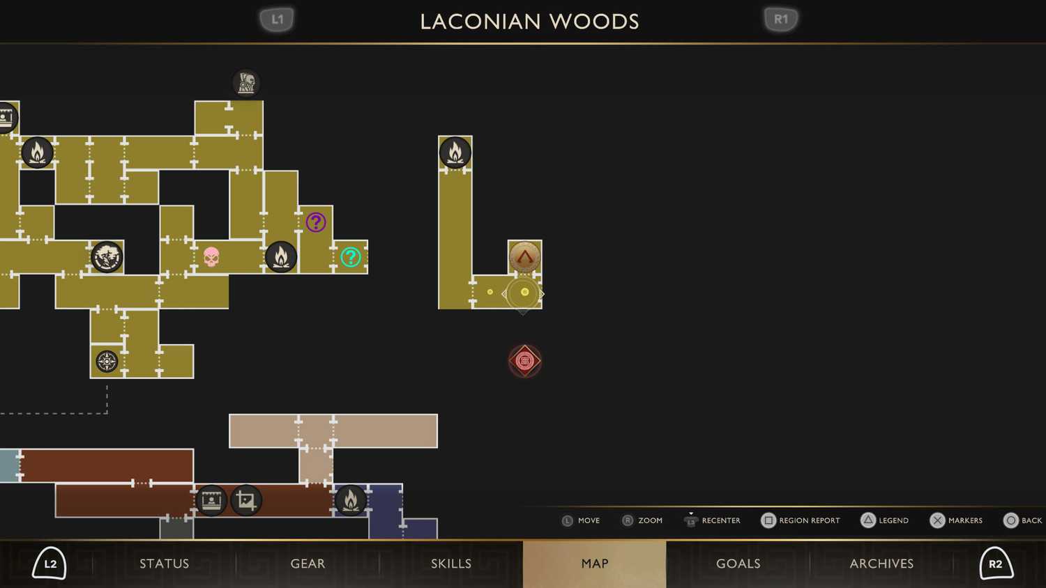 Com o Passo Celestial desbloqueado, sua prioridade deve ser avançar pela Floresta Lacônica em direção ao Templo de Ártemis. Lá, você encontrará a Lâmina Lunar, um Dom dos Deuses que permite empurrar pilares específicos para abrir novos caminhos. Além disso, recomenda-se aprimorar o Estilingue Solar com a habilidade Raio de Luz para destruir grades e obstáculos pelo mapa.