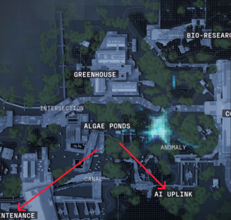 - No mapa Dire Marsh, verifique o Uplink de IA e a zona de Manutenção.