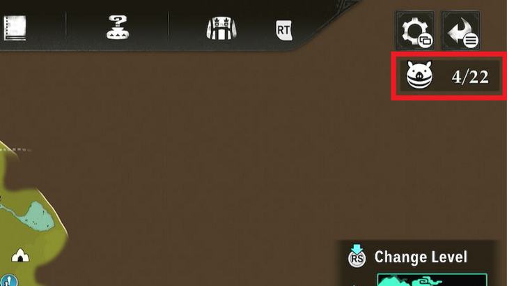 - Indicador no mapa: No canto superior direito da tela do mapa, é possível visualizar quantos Poogies existem naquela região específica e quantos já foram coletados.