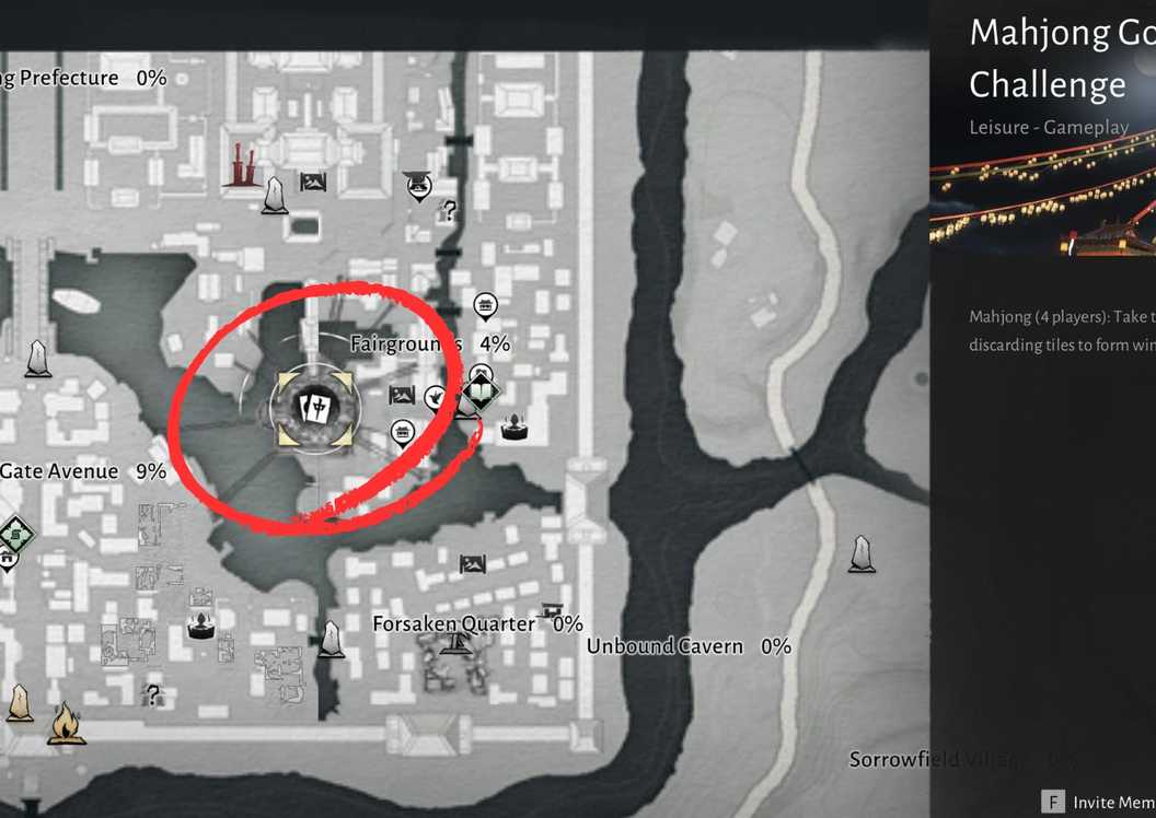 Vá até o Parque de Diversões e procure um salão amplo onde vários NPCs estão reunidos. Lá dentro você encontrará Luo Jiu e Kongkong. Após conversar com os dois, Kongkong sai e Luo Jiu explica que foi roubado, iniciando oficialmente a missão Sopro do Dragão.