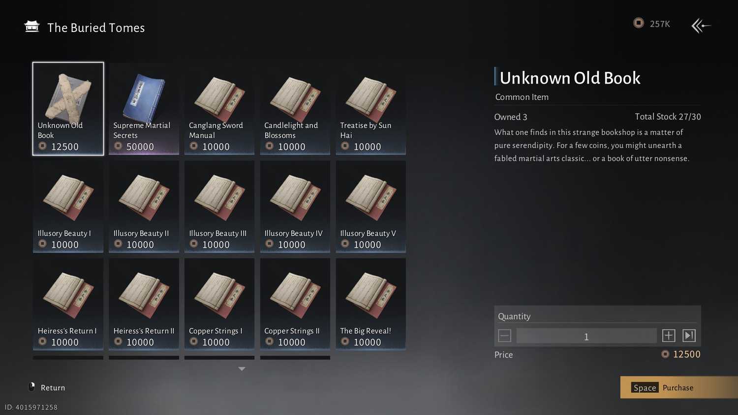 Ni Laoshan vende Livros Antigos Desconhecidos, que são a única forma de obter as páginas necessárias para habilitar Sword Horizon.