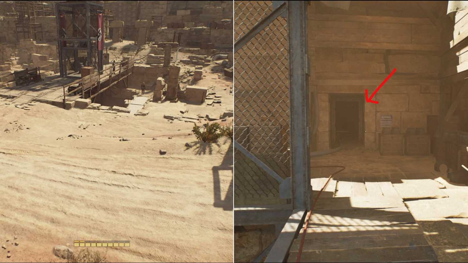 5. Passe pelo portão com o número II, desça as escadas à esquerda e rasteje pelo buraco.